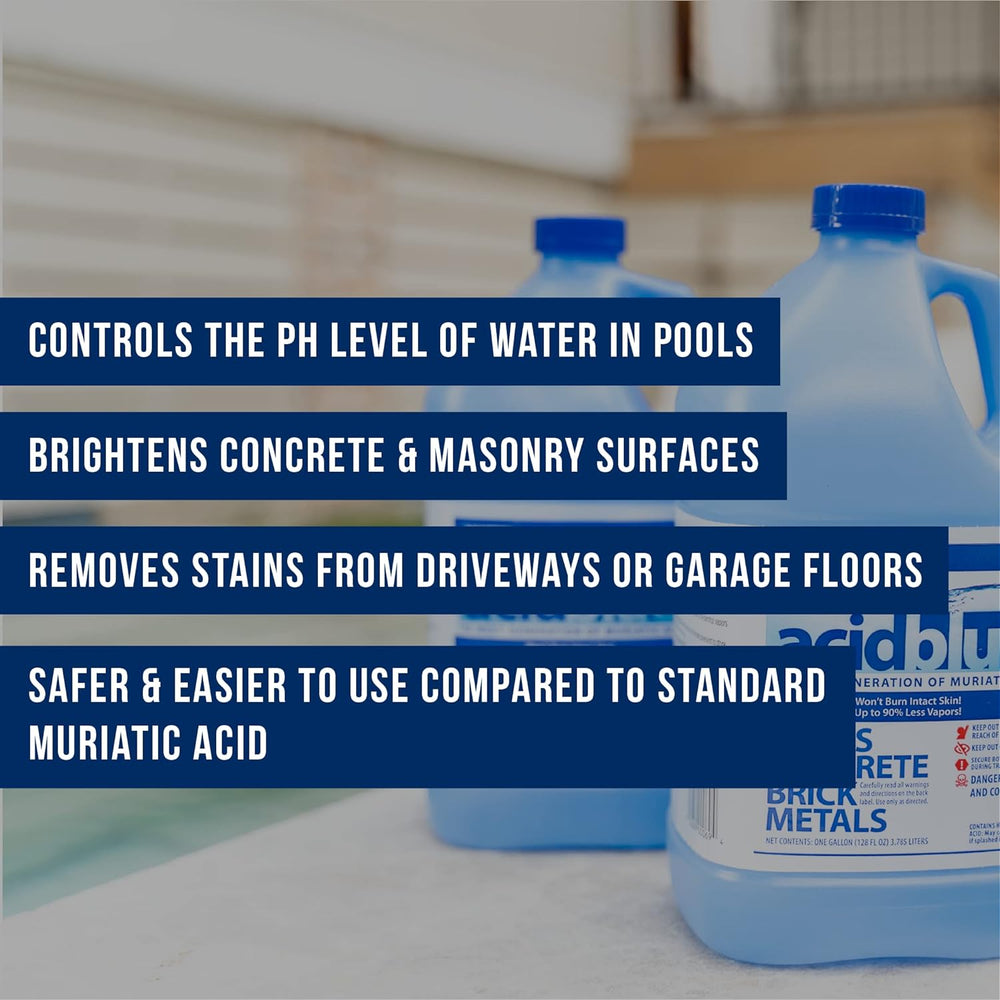 🏊 The Clear Choice for Pool Care: Acid Blue® is not just a product; it's a safer way to maintain your pool and outdoor surfaces. Championing both efficacy and safety, it stands out as a premier choice for those seeking a reliable, low-fume muriatic acid alternative. Embrace the future of pool chemical technology with Acid Blue®, and enjoy a cleaner, safer pool environment.