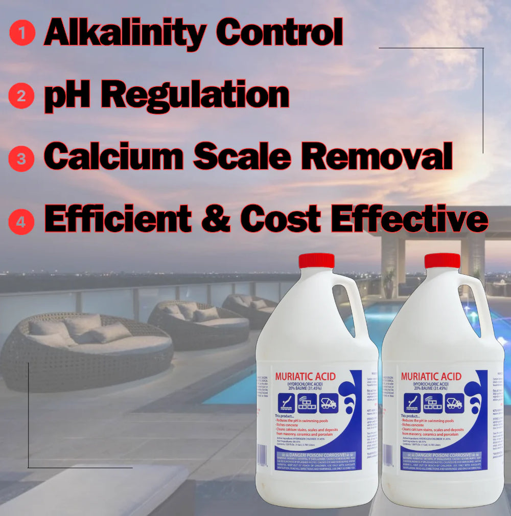 Buckmans Muriatic Acid is a versatile chemical essential for pool maintenance, available in convenient 1-gallon containers. Ideal for adjusting pH levels, it ensures balanced pool chemistry within the ideal pH range of 7.2 to 7.6, enhancing the efficacy of other pool chemicals. This muriatic acid also helps reduce total alkalinity, preventing cloudy water and scale formation, and effectively removes calcium scale buildup on pool surfaces caused by high calcium hardness. Furthermore, it's excellent for cleaning pool surfaces, removing stains, algae, and other deposits. Always handle with care, using protective gear for safety.