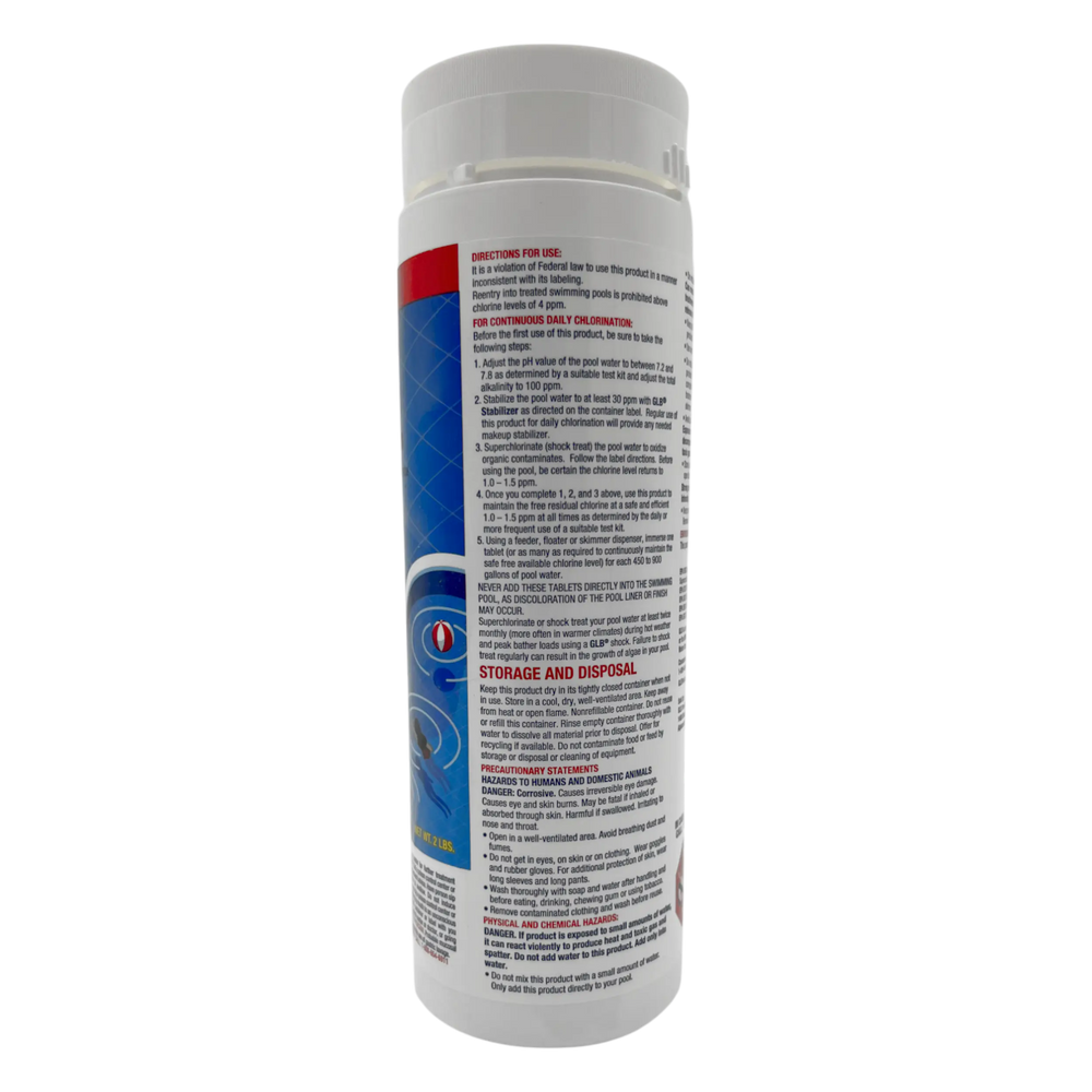 GLB Small 1 Inch Tablets, are slow-dissolving chlorine tablets with 89% stabilized chlorine, perfect for maintaining clear pool water. Ideal for use in floaters, feeders, and skimmers, these EPA-registered tablets are specifically designed to resist breakdown from UV rays, resulting in reduced sanitizer consumption. Keep your pool clean and safe with GLB Small 1 Inch Tablets, the reliable choice for commercial pool sanitation.