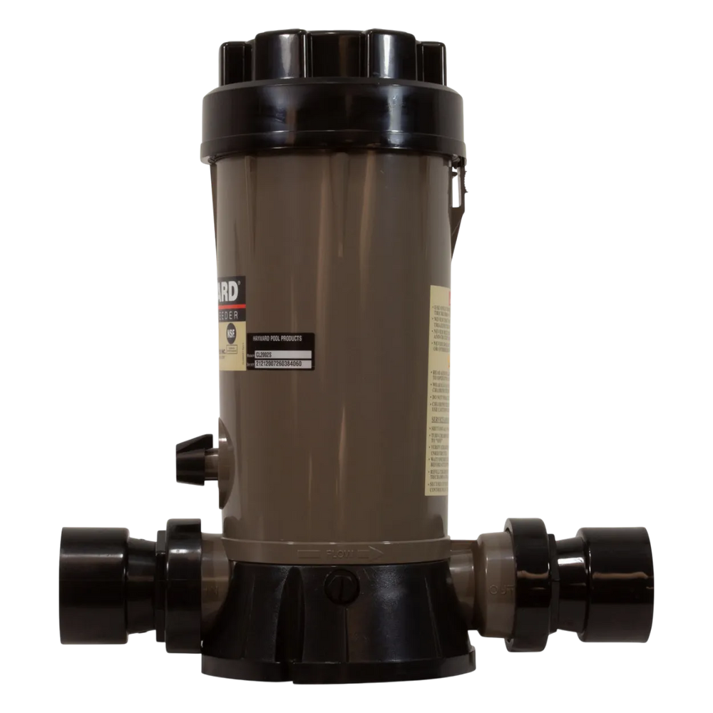 The Hayward Automatic Chemical Feeder CL2002S is an efficient in-line chlorinator, perfect for both above-ground and in-ground pools and spas. This Hayward chlorinator seamlessly integrates with your existing plumbing, providing precise and customizable chemical feed using an adjustable dial. Designed with a corrosion-proof ABS body, it ensures durability while offering easy access for tablet addition with its Easy-Lok threaded cover and secure finger-release catch. The Hayward CL2002S works with both Trichlor and Bromine, accommodating various pool conditions like temperature and pH levels. An effortless replacement or installation, the Hayward cl2002s offers convenience, ease of use, and longevity, making it a top choice for effective pool maintenance.