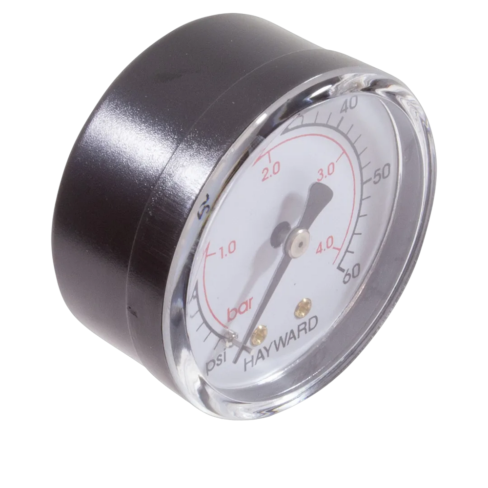 The Hayward HCXFPGB1000 is a pressure gauge featuring a 1/4-inch bottom mount, designed specifically for commercial pool systems. It is composed of plastic and is capable of monitoring pressure up to 60 psi. This part is compatible with the Hayward HCF Series Sand Filter systems.