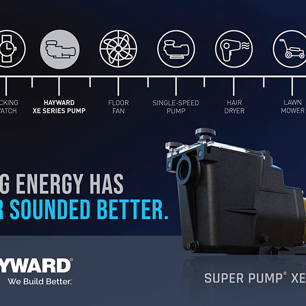 Hayward Super Pump sets the industry standard for excellence and value-and new Super Pump XE is no exception. Offering energy efficiency that outperforms Dept. of Energy standards while cutting pump equipment costs by almost a third, Super Pump XE is the just-right pump for just about any pool. With its easy installation, dual-voltage capability and durable design that's up to 30% lighter weight than competitive VS models, it's the most versatile option for unmatched value. Hayward Super Pump sets the industry standard for excellence and value-and new Super Pump XE is no exception. Offering energy efficiency that outperforms Dept. of Energy standards while cutting pump equipment costs by almost a third, Super Pump XE is the just-right pump for just about any pool. With its easy installation, dual-voltage capability and durable design that's up to 30% lighter weight than competitive VS models, it's the most versatile option for unmatched value.