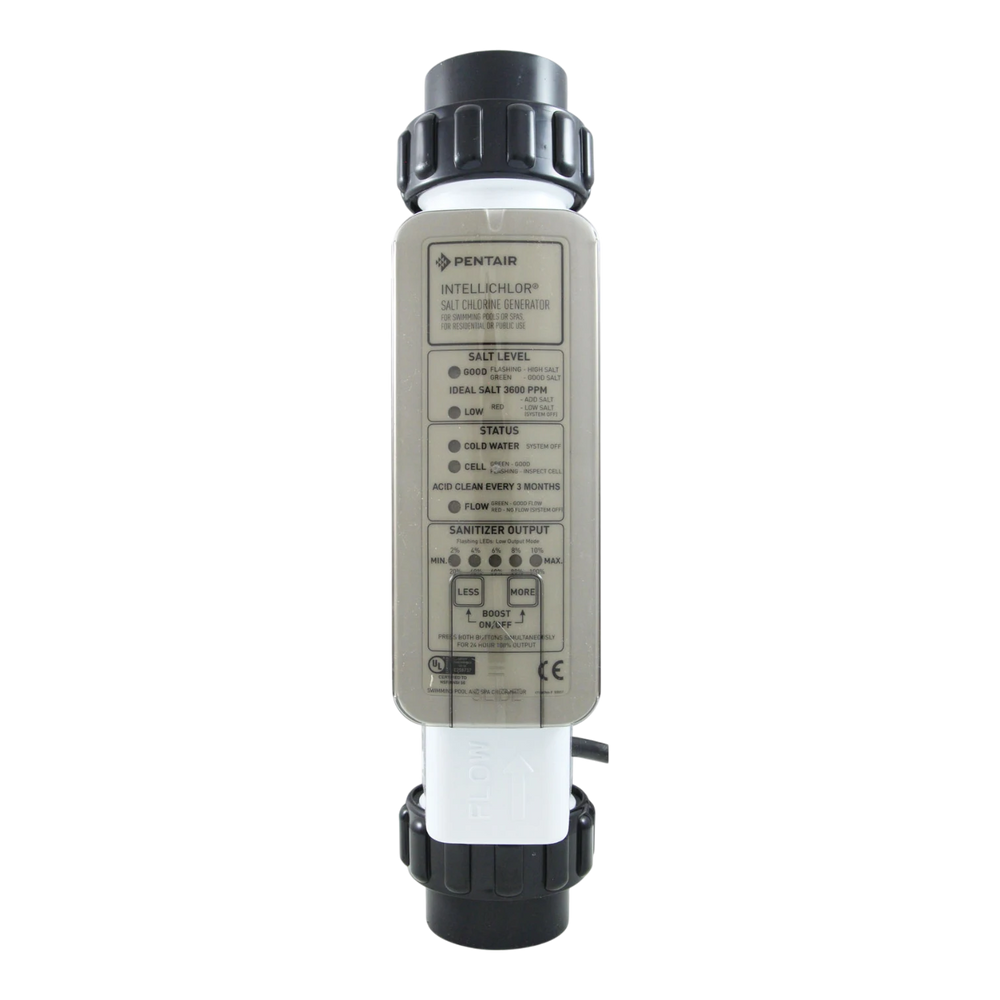 The IntelliChlor has full diagnostic capabilities, including cell life tracking that communicates remaining hours of cell life in real-time. It captures all performance data daily (production settings, hours of operation, chlorine output, cell cleaning cycles, salt readings, and water temperature averages). Plus, it has easy-to-view displays and operation is a simple push button. This unit is capable of communicating with IntelliTouch, EasyTouch, and SunTouch Automation Systems. It can also be used as a stand alone system.