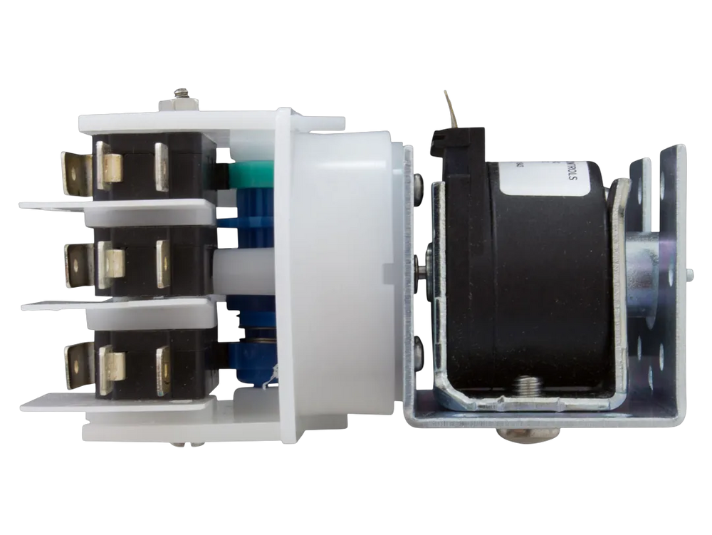 The Intermatic 143RC140 is a four-function stepper relay designed for pool and spa applications. It comprises metal and plastic materials and operates with a 120 volts AC coil. This relay fits RC2100FE and RC2100E series systems.