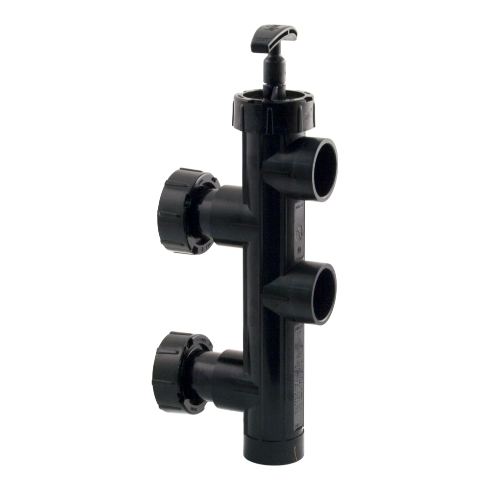 The Jandy BWVL-SLD is a 2-position slide backwash valve designed for use with Jandy DEV, JS, and SFSM Sand Filters. This valve facilitates the backwashing process, ensuring optimal filtration performance for swimming pools. It includes a pre-plumbed universal union kit for easy installation with compatible filter models.