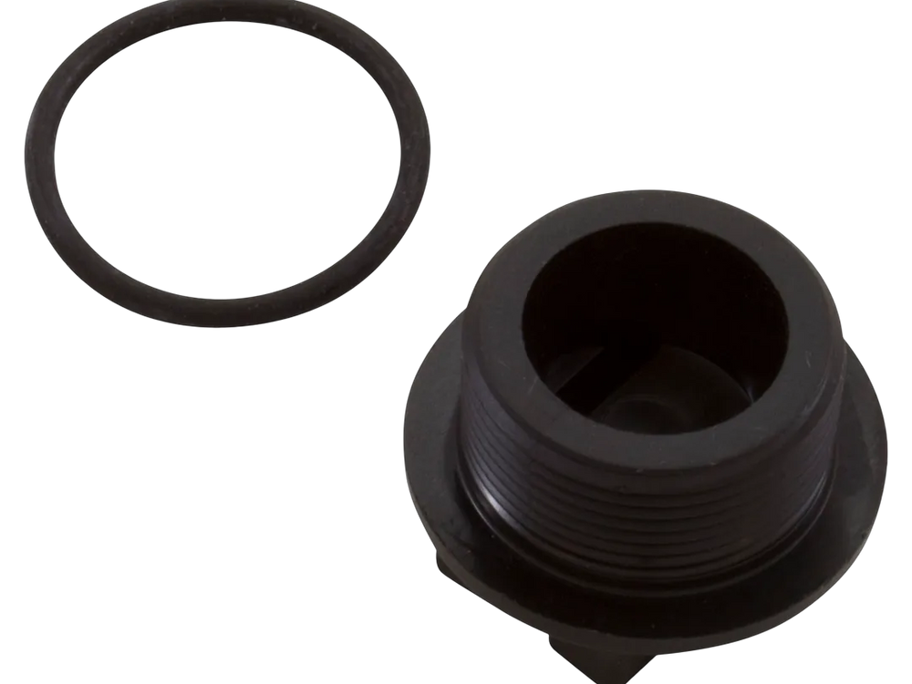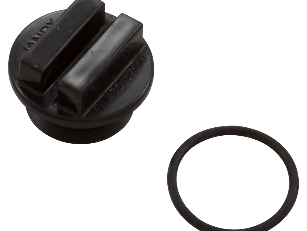 The Zodiac R0358800 is a drain plug (small threaded drain cap) for Zodiac/Jandy DEL and CL series pool filters. It is a threaded drain cap that includes an O-ring and is specified with a 1-3/8" thread OD and a 1" thread ID. This part fits Jandy DEL D.E.
