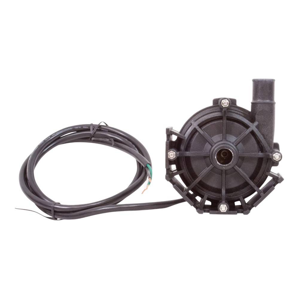 The Laing E10 Spa Circulation Pump is a reliable choice for efficient water flow in hot tubs such as Hot Springs and Dimension One. Designed for continuous duty, it can be mounted horizontally or vertically and is equipped with 3/4" hose barbs for easy installation. Operating at 120V with a 4-ft cord, this pump delivers 1/40 HP and 63W, pushing up to 15 GPM. Compatible with 1" tubing when paired with BX9442 adapters, this Laing Thermotech unit ensures longevity with a 1-year manufacturer's warranty. Ideal for maintaining optimal spa circulation, the pump's compact dimensions (6"L x 4-7/8"H) allow for versatile placement.