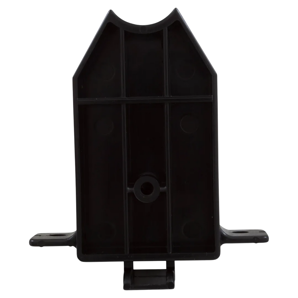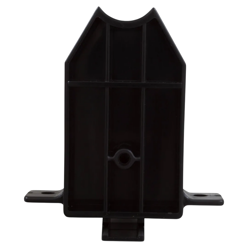 The Maytronics 9987601 is a motor unit clip specifically designed for Dolphin 2x2 pool cleaners. Made from durable black plastic, it features a rectangular shape with slanted sides to effectively hold and stabilize the motor unit. This component is compatible with models such as the Dolphin 2x2 Gyro, 2x2, 2x2 C6 Plus, and Enduro 21R.