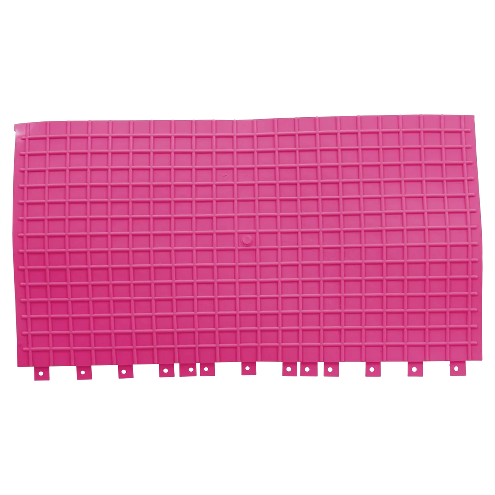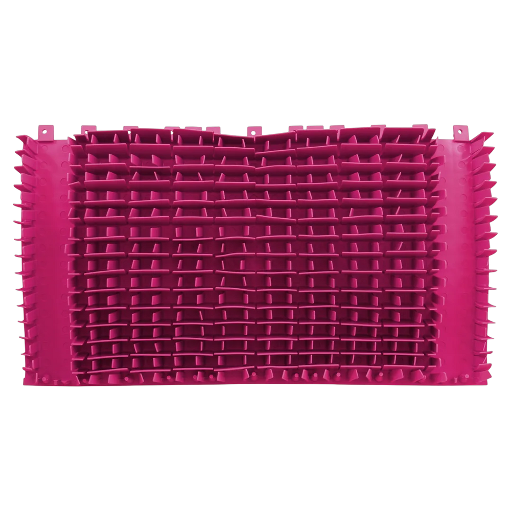 The Maytronics 6101604 is a replacement brush designed for use in Dolphin pool cleaners. It is constructed from flexible, rubber-like PVC material, available in a magenta color. This brush specifically fits models such as the Dolphin Advantage, Advantage Plus, Deluxe 115V, Deluxe 3/4, DLX4, and DL2010, wrapping around the wheel tube of the cleaning unit for effective performance.