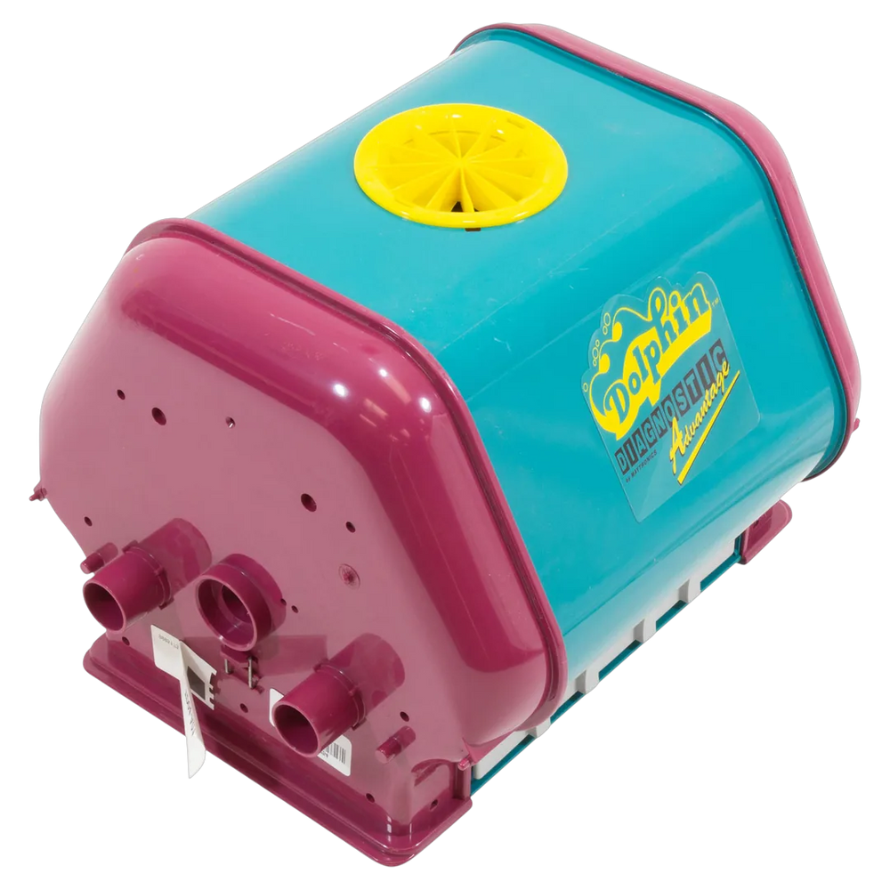 The Maytronics 9995173 is an outer casing designed for Dolphin robotic pool cleaners. This casing features a distinctive turquoise and magenta color scheme. It is specifically compatible with the Dolphin series, ensuring a proper exterior fit for these robotic cleaners.