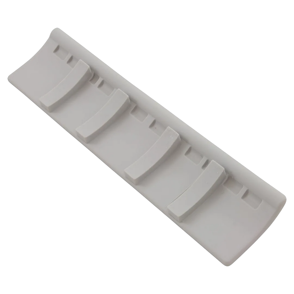The Maytronics 9985280, a Non-Return Flap, is a diagnostic component designed for Dolphin robotic pool cleaners. This part is constructed of gray plastic and features a slightly curved, long rectangular shape with seven long round tabs and four rectangular extensions on the back. It is compatible with various Dolphin models, including the Advantage, Advantage RC, Advantage Plus, Advantage RC Plus, and Advantage Plus Pro RC.