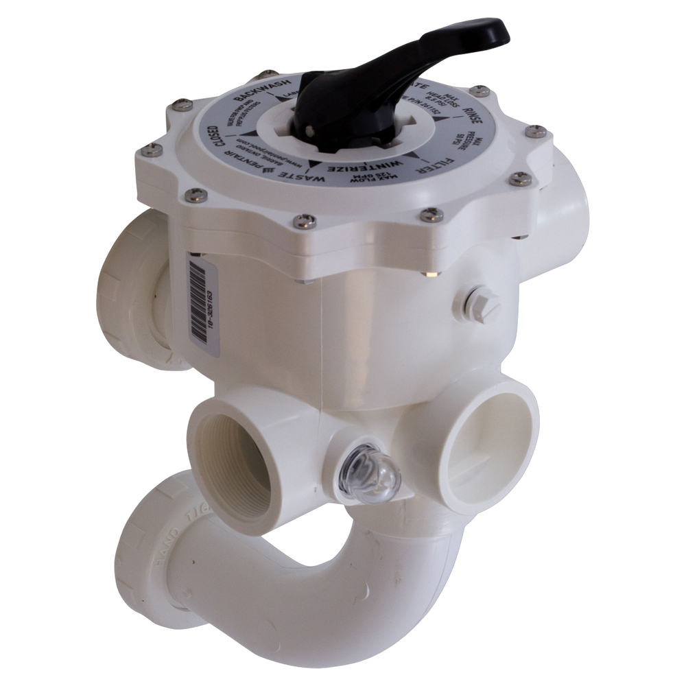 The Pentair 261152 is a 2-inch threaded multiport valve designed for use with Pentair FNS, FNS Plus, and Nautilus Plus pool and spa D.E. filters. It features a side-mounted, six-position handle that allows easy cycling between various flow settings, including a special winterizing position, to manage filtration system functions efficiently.