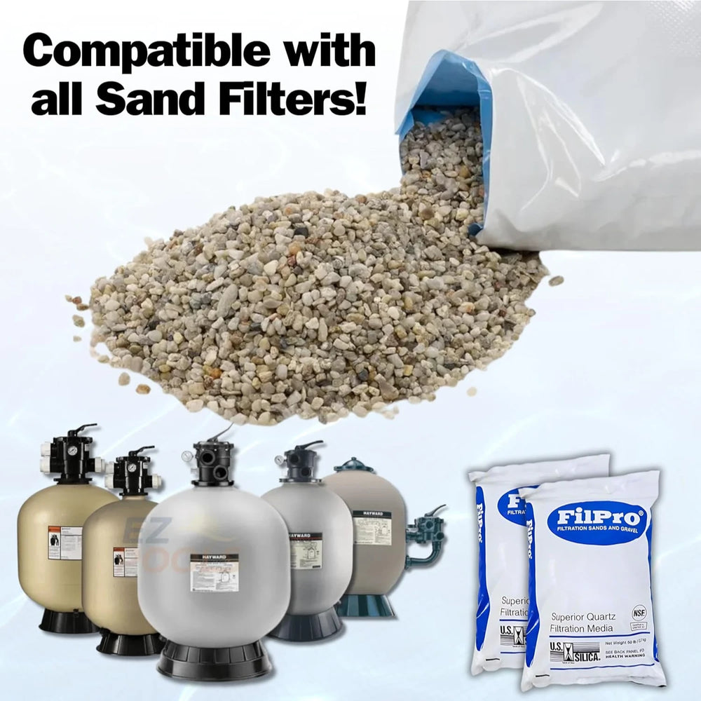 50LB Bag of Pea Gravel for Sand Filters. Used to prevent channeling to the bottom of the pool filters where the laterals are.