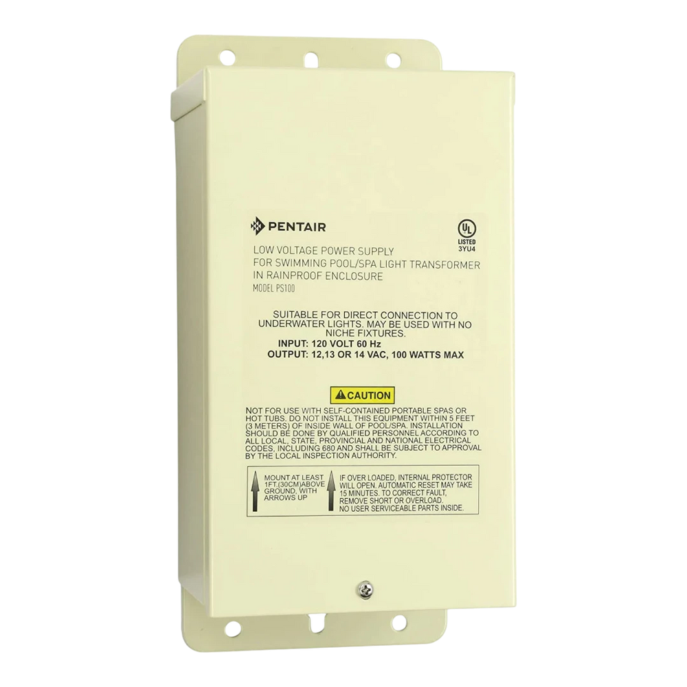 The Pentair Light Transformer 12-14 Volts - 100 Watts is a reliable component designed for Pentair lighting systems. Ideal for MagicStream Laminars, IntelliBrite Landscape LED, and GloBrite Pool and Spa LED lights, it efficiently converts power to support low voltage lighting needs. This 12v pool light transformer ensures consistent illumination and safety, perfect for enhancing your pool or landscape environment. Durable and dependable, it seamlessly integrates with your existing Pentair setup, providing a stable energy converter for optimal performance. Enjoy a well-lit pool area with this essential Pentair transformer.