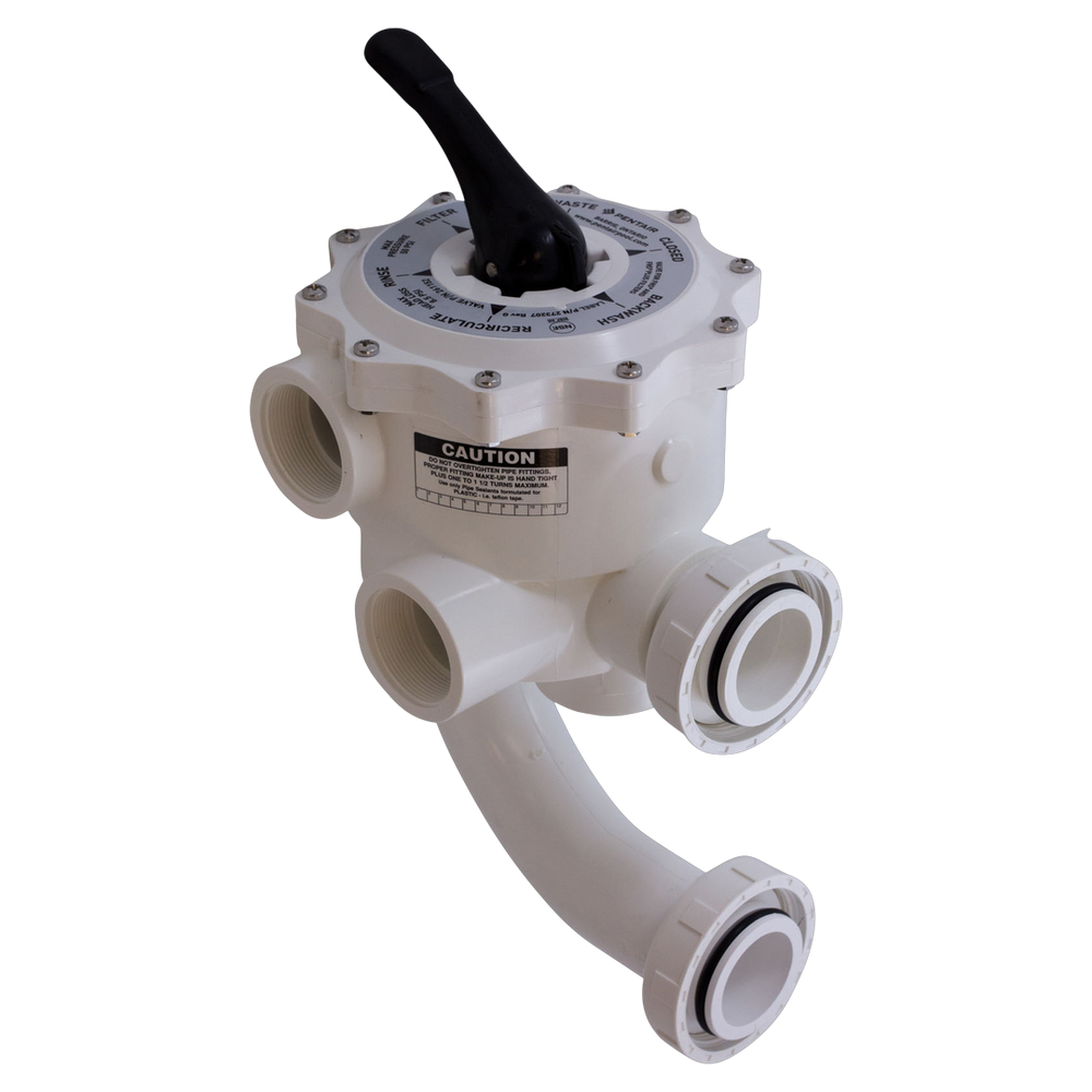 The Pentair 261152 is a 2-inch threaded multiport valve designed for use with Pentair FNS, FNS Plus, and Nautilus Plus pool and spa D.E. filters. It features a side-mounted, six-position handle that allows easy cycling between various flow settings, including a special winterizing position, to manage filtration system functions efficiently.
