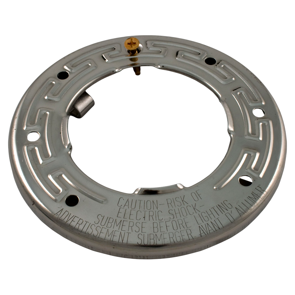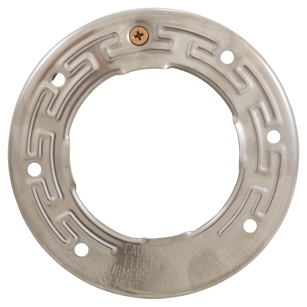 The Pentair 79111600 is a stainless steel face ring assembly designed as a replacement part for various Pentair pool and spa lighting systems, including the IntelliBrite 5g color LED lights, SpaBrite, and SAL Spectrum AquaLight models. This part is essential for maintaining the aesthetic and functional integrity of the lighting fixtures.