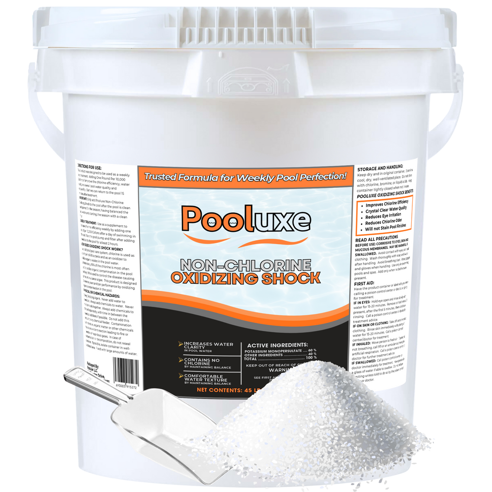 Designed for convenience and performance, Pooluxe Non-Chlorine Oxidizing Shock is trusted by pool and spa owners to deliver results without the hassle. Whether you're hosting a backyard pool party or enjoying a peaceful hot tub soak, Pooluxe ensures your water stays clear, clean, and safe.