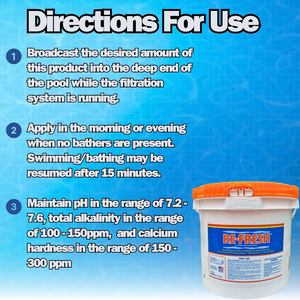 🏊 Dive Into Purity: With Refresh Pool Shock, you’re not just cleaning your pool; you’re elevating it to a haven of health. Step back into the water with confidence, knowing that every granule works tirelessly to maintain the perfect pool experience.