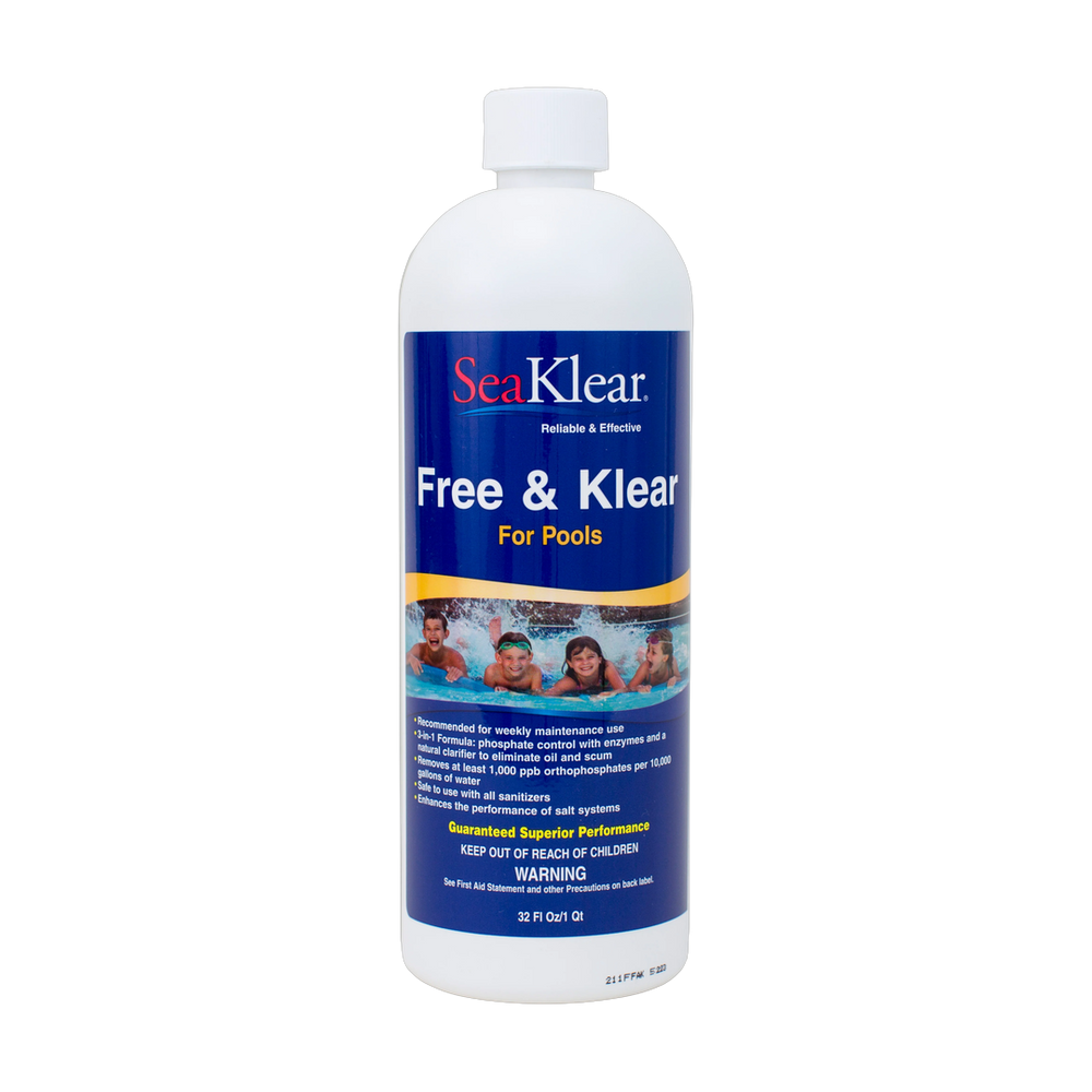 SeaKlear Free & Klear is a versatile 3-in-1 pool maintenance product that combines a natural clarifier, phosphate remover, and enzymes. Designed to keep pool water clear and reduce scum and oily buildup, it is compatible with all sanitizers and particularly beneficial for saltwater systems. Ideal for regular use, it addresses common water quality issues effectively.