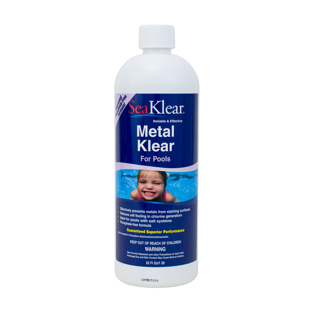 - Add 4 oz of SeaKlear Metal Klear per 10,000 gallons of pool water to the deep end of the pool weekly.