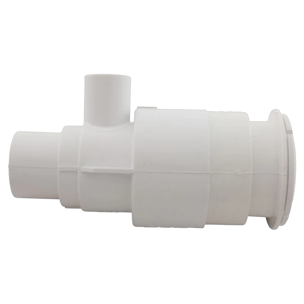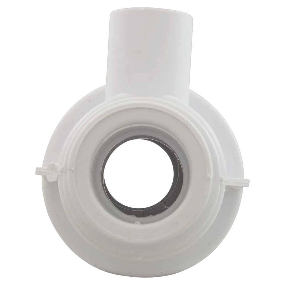 The Waterway 210-3830 is a white Poly Gunite jet body straight assembly featuring a 1/2" spigot air connection and a 1" spigot water connection. This component is designed specifically for use in pool or spa installations, providing structured water flow management. The assembly seamlessly integrates with systems that utilize matching spigot connections, ensuring precise compatibility.
