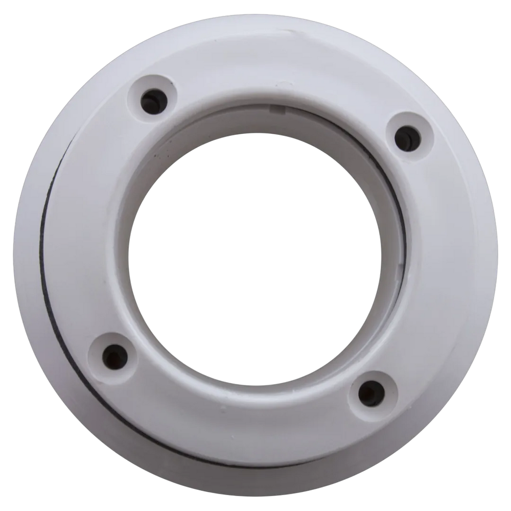 The Waterway 210-5500 is a Poly Jet Vinyl Wall Fitting Assembly designed for use with vinyl liners in spas and hot tubs. It is composed of a wall fitting, retainer plate, gasket, and screws, with a 2-5/8 inch hole size and white in color. The assembly is suitable for installations that require efficient water circulation through poly jets.