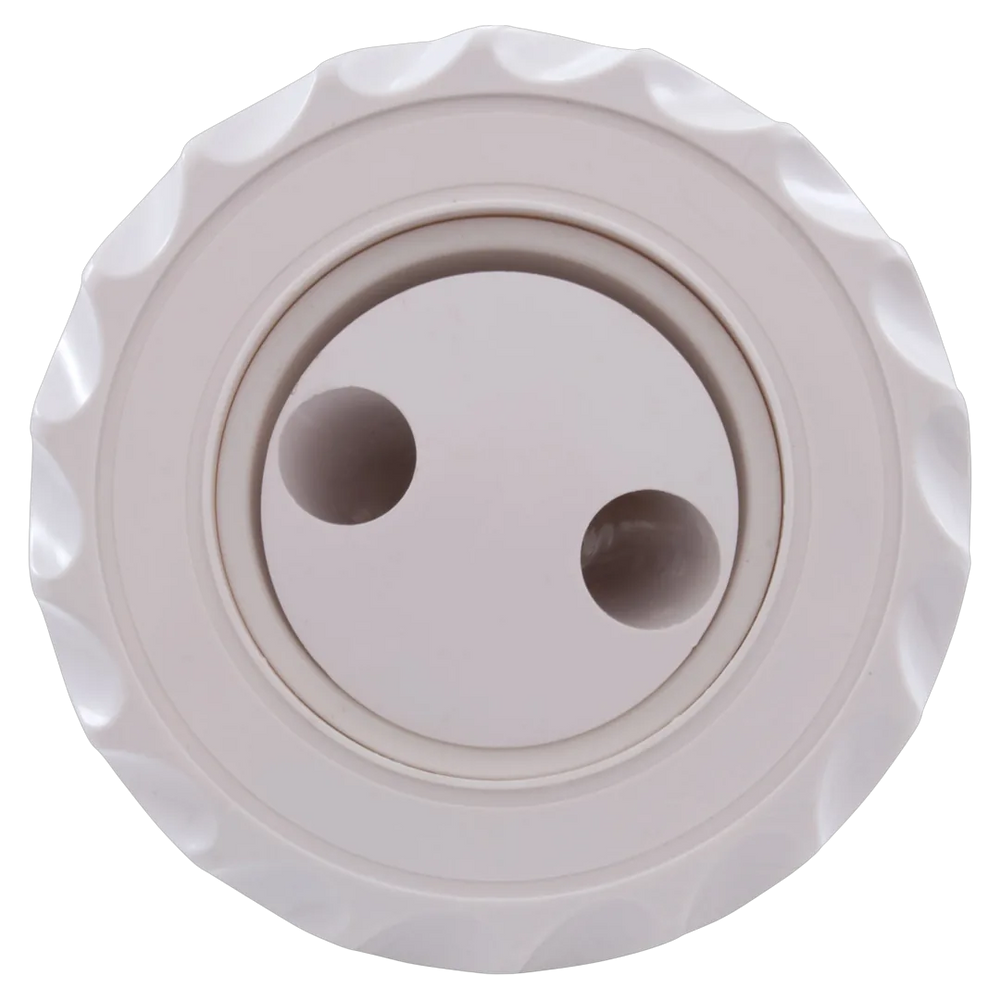 The Waterway 210-6070 is a Pulsator Deluxe Internal Poly Jet in white. It features a 3-3/8 inch deluxe scalloped face and twin roto-style internals with an adjustable on/off control. This jet is designed for installation in spas and hot tubs, providing rotational pulsating action as a screw-in jet insert.