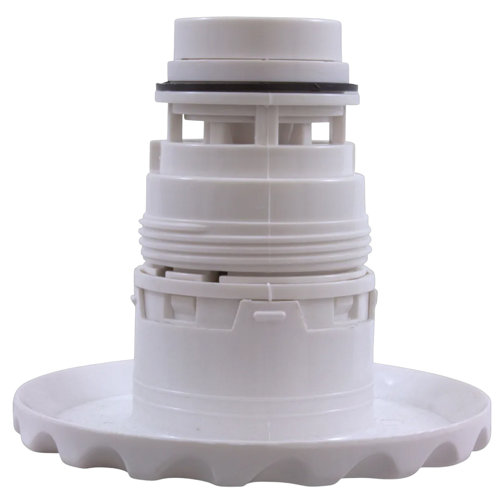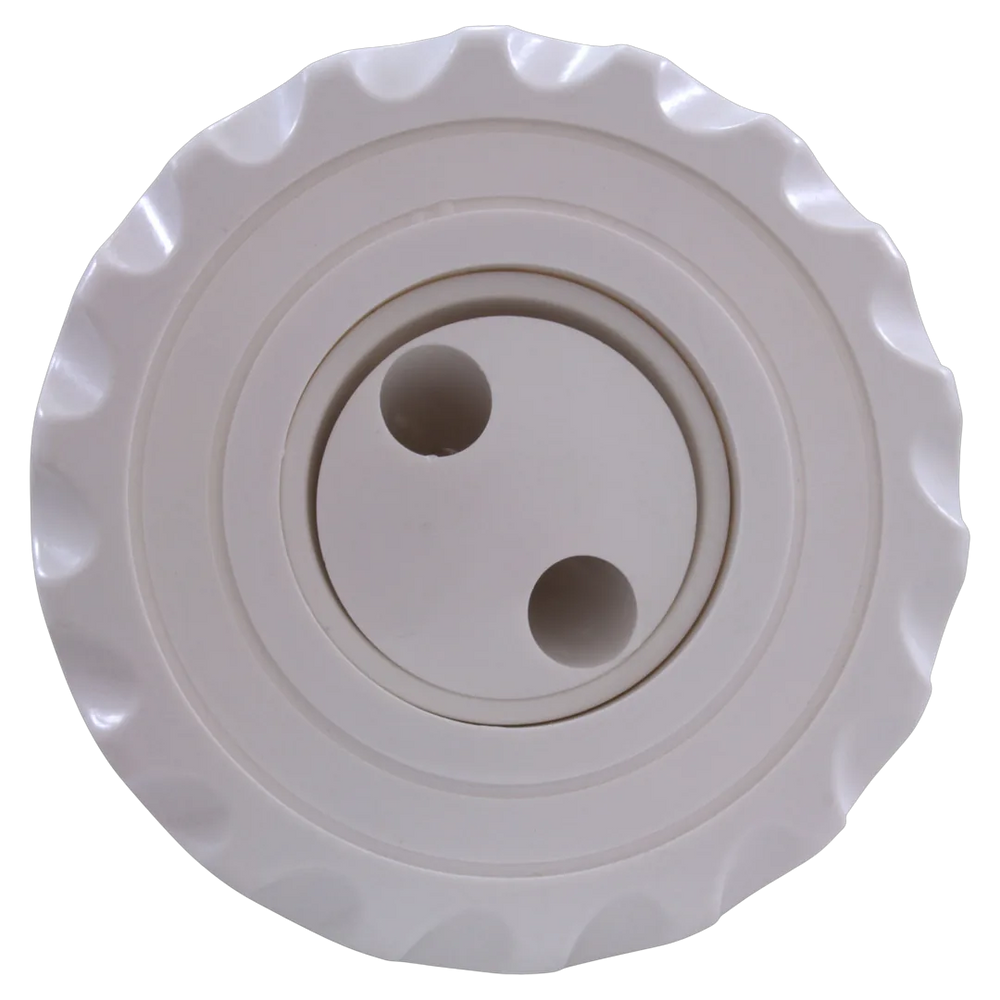 The Waterway 210-6170 is a Poly Internal Large Pulsator jet designed for the Deluxe Series. It features a large scalloped white face with a 4-1/4 inch diameter and utilizes a thread-in connection for secure installation. This jet is intended for use in pool and spa systems, specifically within the Legacy Poly Gunite series.