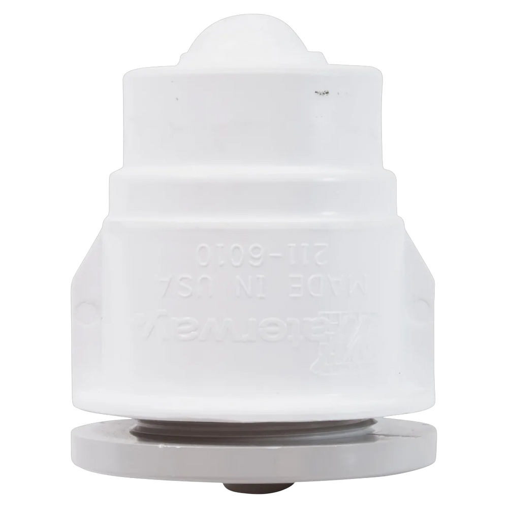 The Waterway 210-7089-STS is a neck jet assembly for pool and spa systems. It consists of a complete jet featuring a 3/4-inch barb water connection and has a sterling silver finish. The assembly is intended to fit into a 1-3/4-inch hole size, adhering to jet insert specifications for compatible equipment.