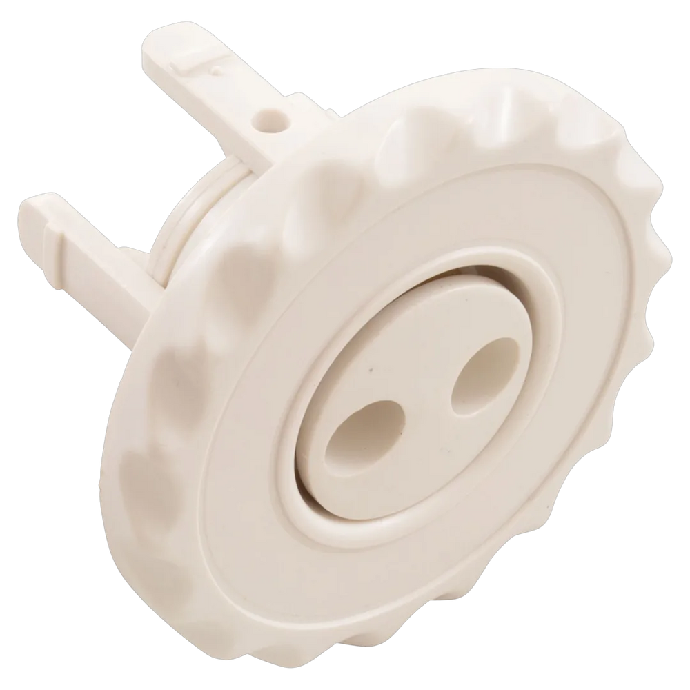 The Waterway 224-1040G is a Mini Gunite Pulsator M/J Eyeball Assembly designed for use in spas and pools. It features a white, scalloped, deluxe face style with a twin rotational internal type. This assembly is compatible with the Mini Gunite Pulsator Jet Internal systems, providing a specific fit for Waterway installations.