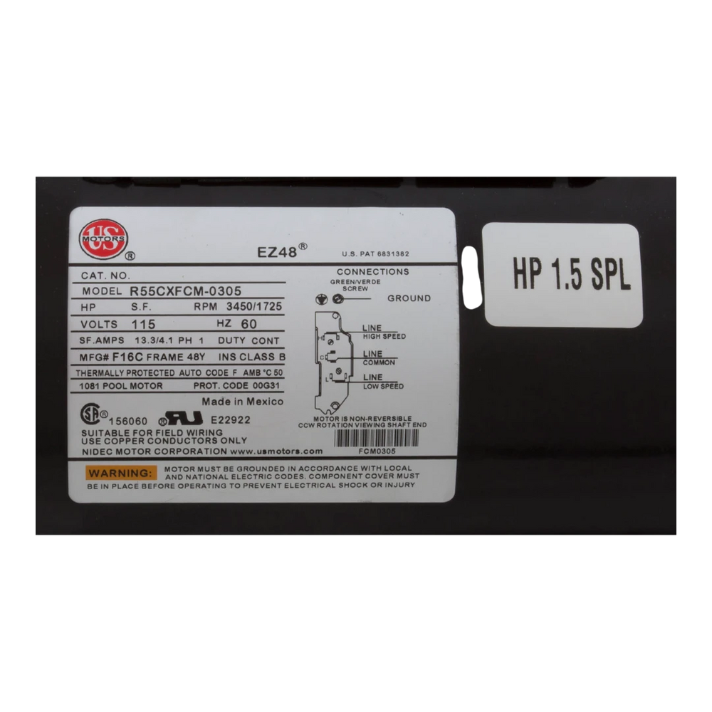 Waterway E-Series Pump 1.5 SPL 115V 2 Speed 48 Frame 1.5 Inch Ports OEM Replacement