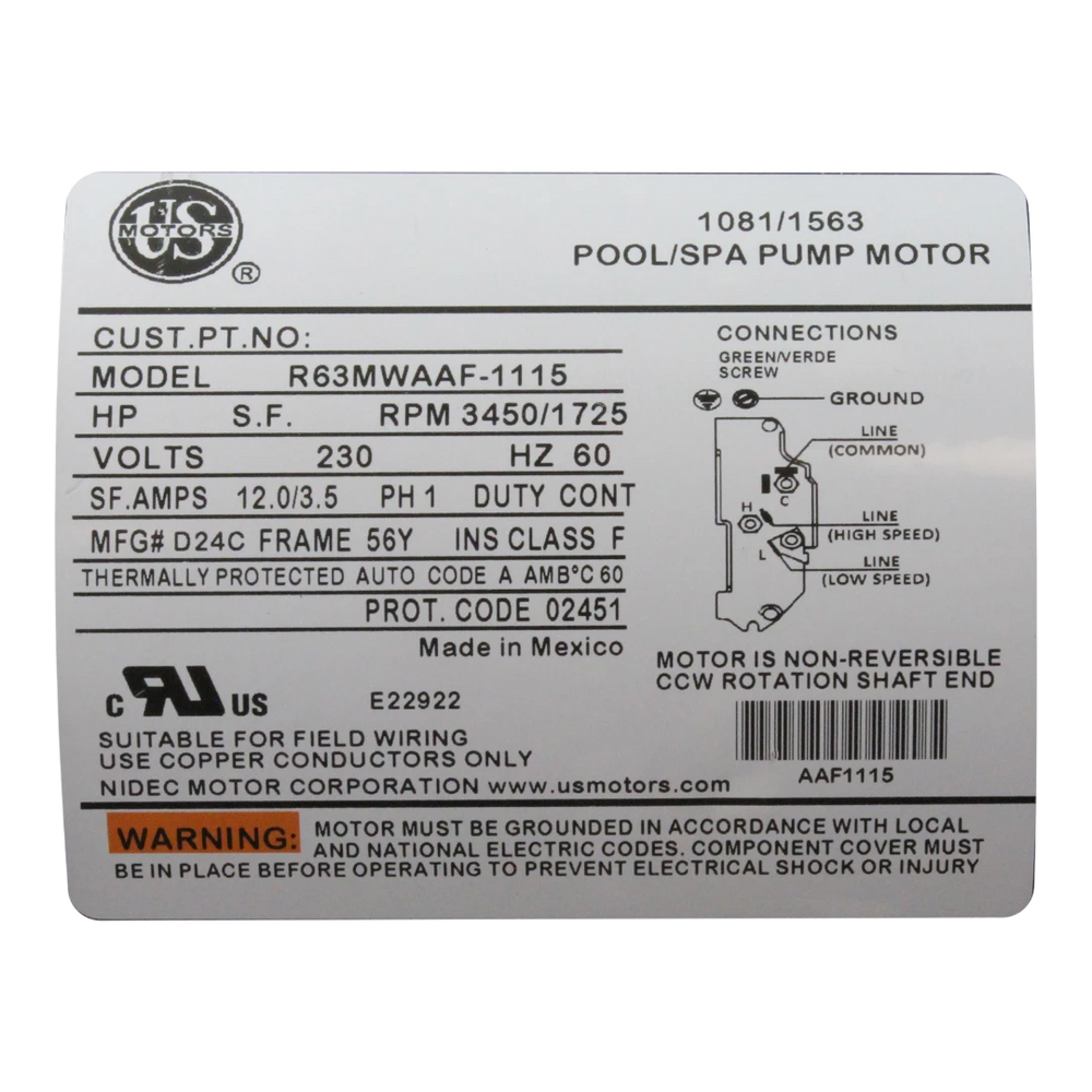 Waterway Executive 4.0HP 230V 2-Spd 56fr 2-1/2" x 2" OEM