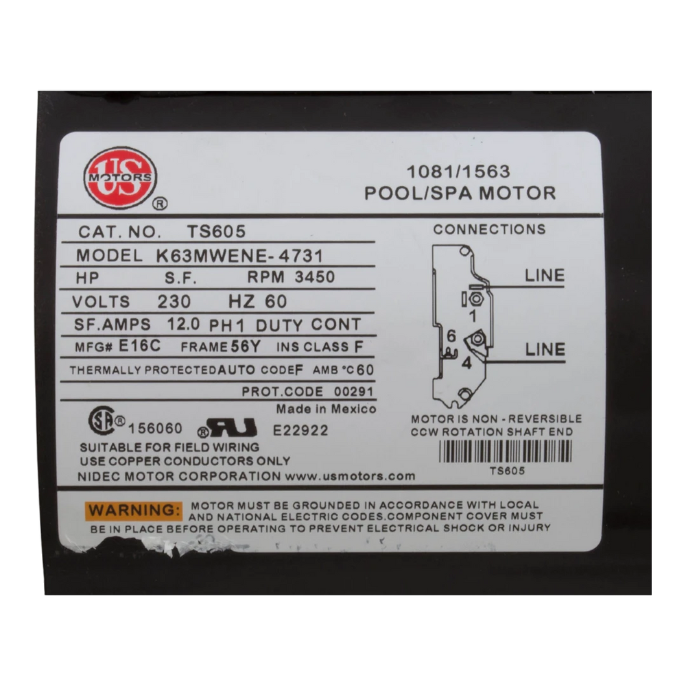 Waterway Executive Pump 4.0HP 230V 1 Speed 56 Frame 2.5" x 2" OEM Replacement