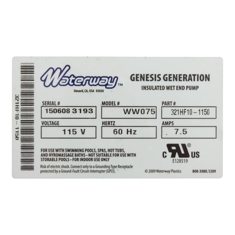 The Waterway Genesis Bath Pump (Model 321HF10-0150) is a 3/4 horsepower, single-speed pump designed for efficient water circulation in whirlpool bathtubs and similar applications. Its energy-efficient design and integrated air switch make it a reliable choice for bath installations.