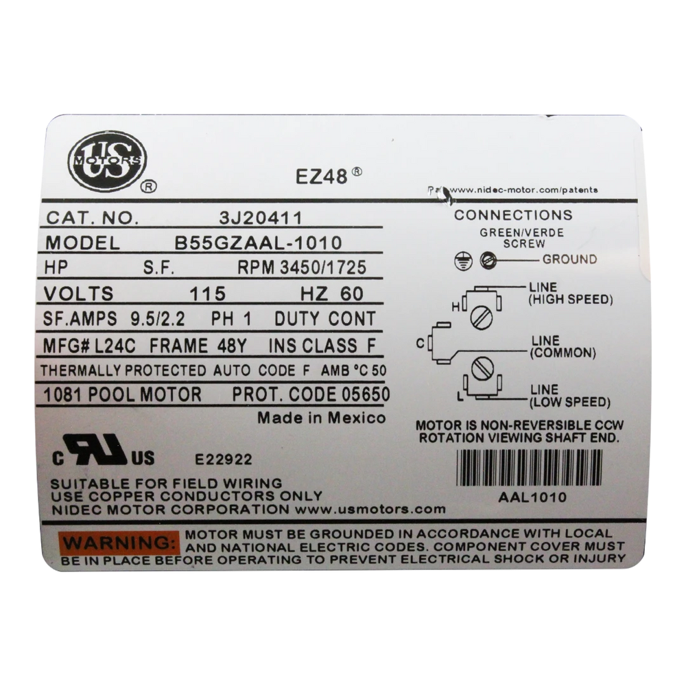 | Amperage | High Speed: 9.5A, Low Speed: 3.2A |